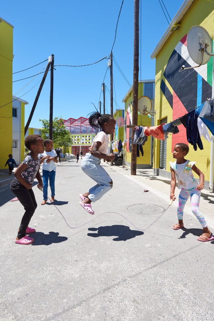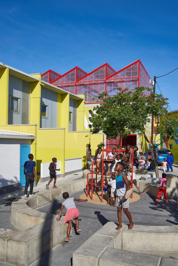 Khayelitsha community in South Africa welcomed a new development last year, something one can also refer to as a colorful social architecture. The social project was completed recently by a non-profit urban development organization known as Urban-Think Tank Empower. Opened during Design Week South Africa in the last quarter of 2025, the colorful center is part of a community-let development to upgrade an informal settlement with 72 housing units, comprise of childcare, educational and sports spaces with a kitchen and rooftop vegetable garden overseen by Urban-Think Tank Empower (UTTE) according to Dezeen.